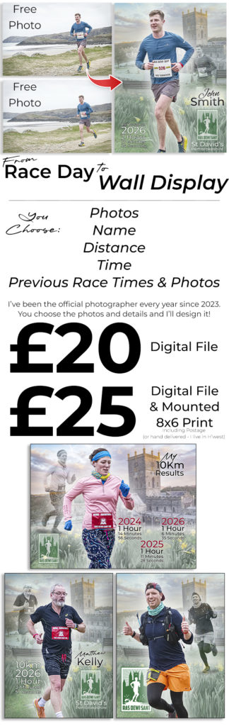 Upgrade your free photos to a personalised digital Race Memory for £20, add £5 for a mounted 8×6 print.